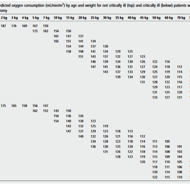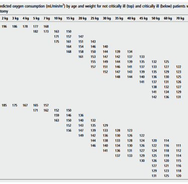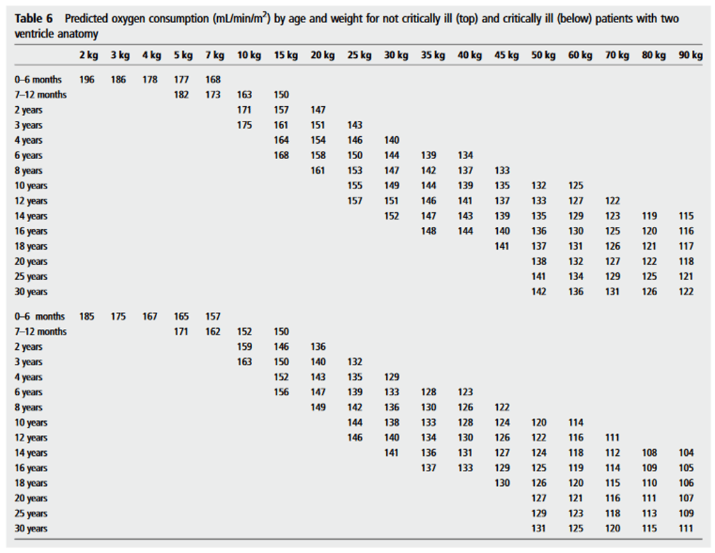 Tablas para consumo de oxígeno en pacientes con corazón biventricular y corazón univentricular